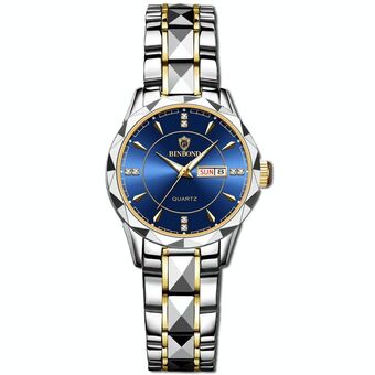 BINBOND B5552 Luminous Multifunctional Business Calendar Quartz Watch(Female-Inter-gold-Blue) (BINBOND)