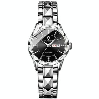 BINBOND B5552 Luminous Multifunctional Business Calendar Quartz Watch(Female-Black Steel-Black) (BINBOND)