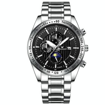FNGEEN 5800 Men Three Eyes and Six Pins Watch Student Quartz Watch(Black Steel White Surface) (FNGEEN)