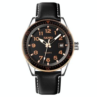 SKMEI 9279 Stainless Steel Buckle Genuine Leather Strap Waterproof Quartz Watch(Black) (SKMEI)
