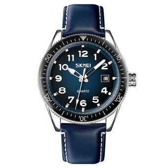 SKMEI 9279 Stainless Steel Buckle Genuine Leather Strap Waterproof Quartz Watch(Blue) (SKMEI)