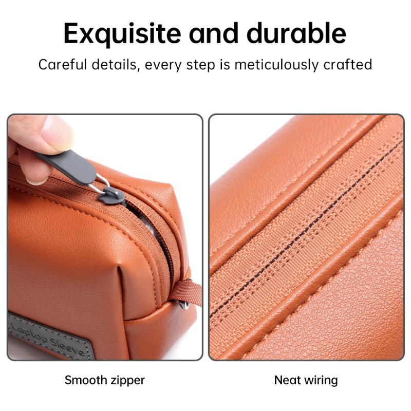 Waterproof PU Leather Laptop Accessory Bag(Dark Blue)