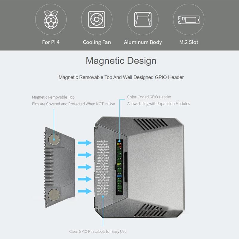 2. Magnetic Design: Magnetic removable top and well designed GPIO header