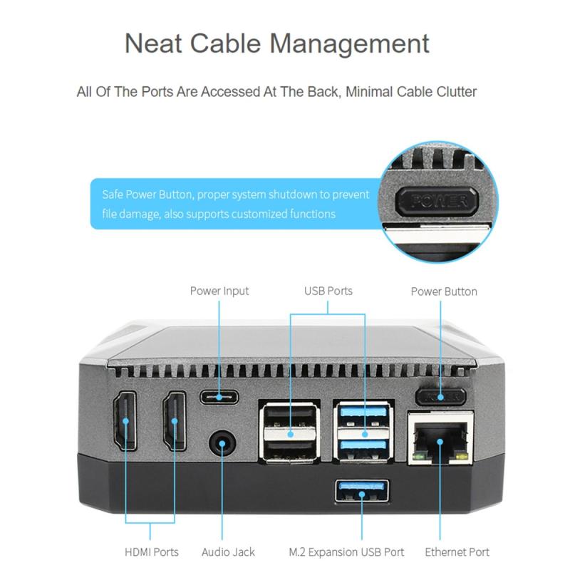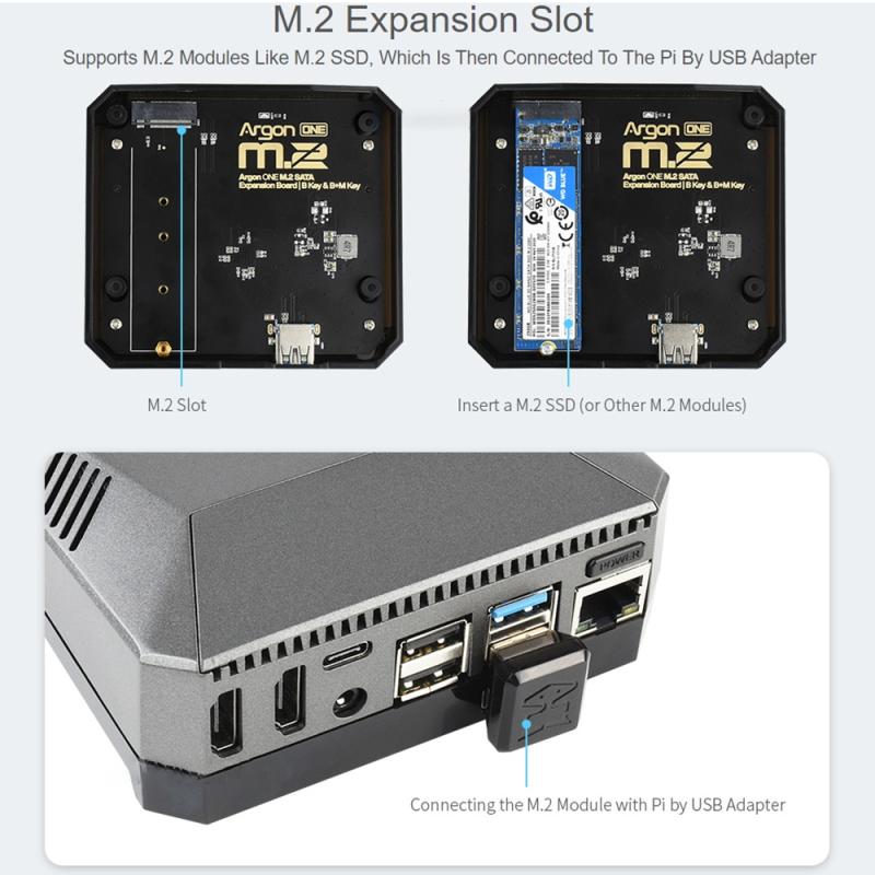 3. M.2 Expansion Slot: Support M.2 modules like M.2 SSD, which is then connected to the Pi by USB adapter