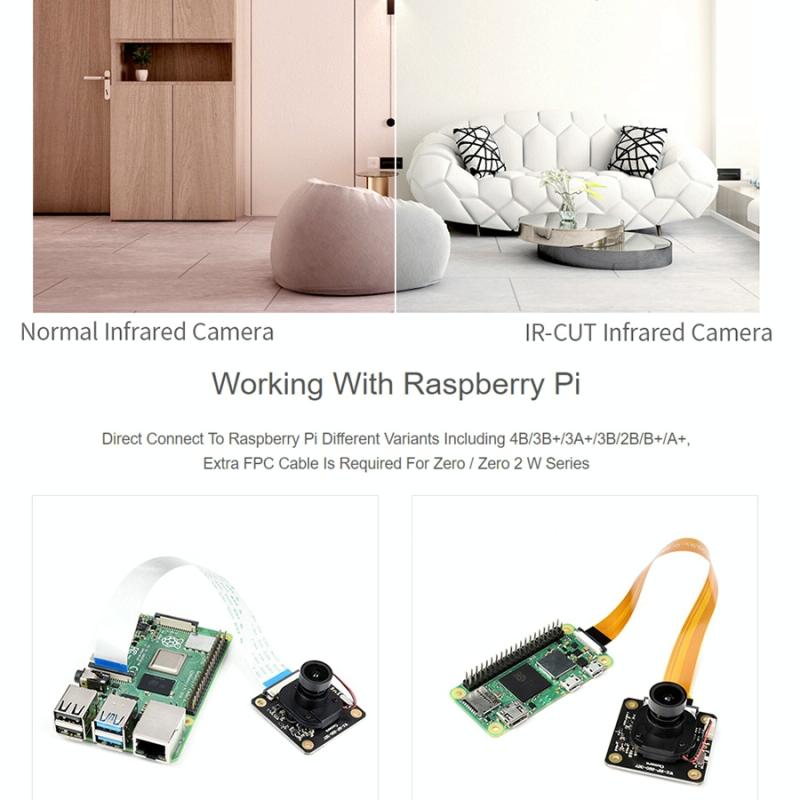 The IMx290-83 IR-CUT Camera is a starlight camera for the Raspberry Pi board and module series. Using a IMX290 starlight sensor with 2 million pixels, onboard IR-CUT, it can freely switch the modes between daytime (RGB) and nighttime (monochrome) through the onboard button.