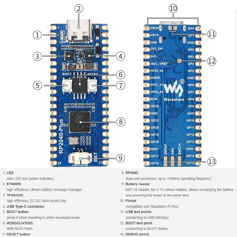 1. RP2040 microcontroller chip designed by Raspberry Pi in the United Kingdom