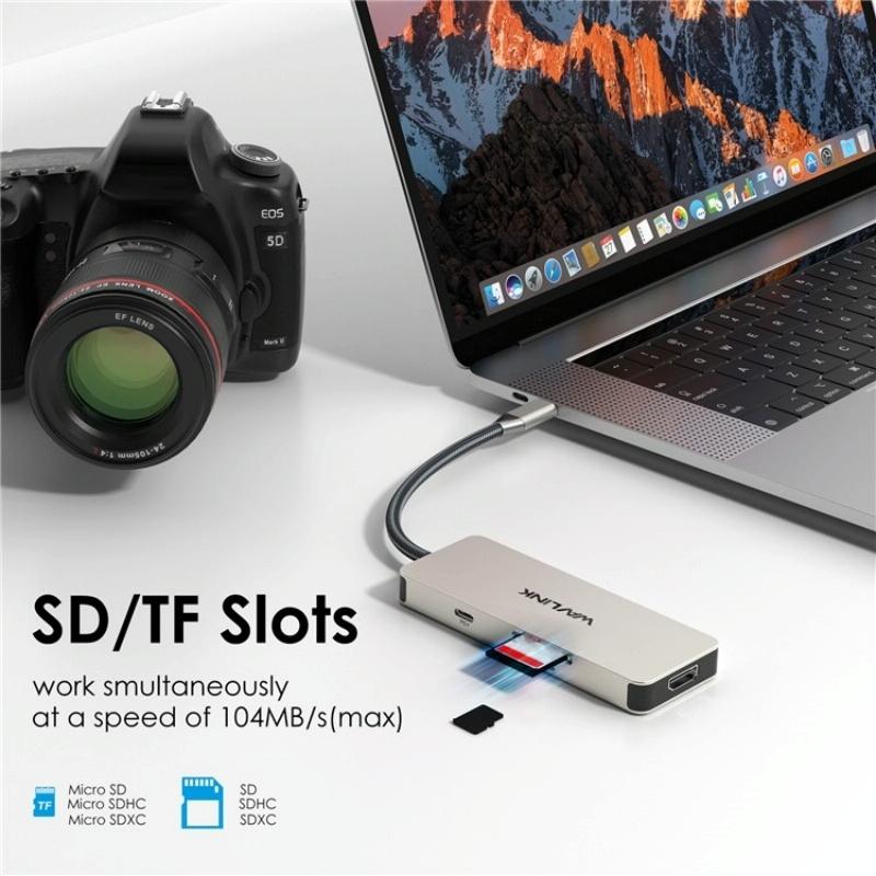1. Pocket-Sized Powerhouse: The WAVLINK 7-in-1 USB-C to 4K HD Mini Dock is compact yet powerful, measuring just 4.2 x 1.6 x 0.5 inches. It features 4K@60Hz HD output, 100W PD charging input (up to 85W for the host device), 3 x 5Gbps USB-A 3.1 ports, and a 104MB/s SD/TF card reader (supports simultaneous operation). This mini dock expands your PC connectivity and upgrades your host device into a multitasking workstation while remaining travel-friendly. No drivers are needed, just plug and play