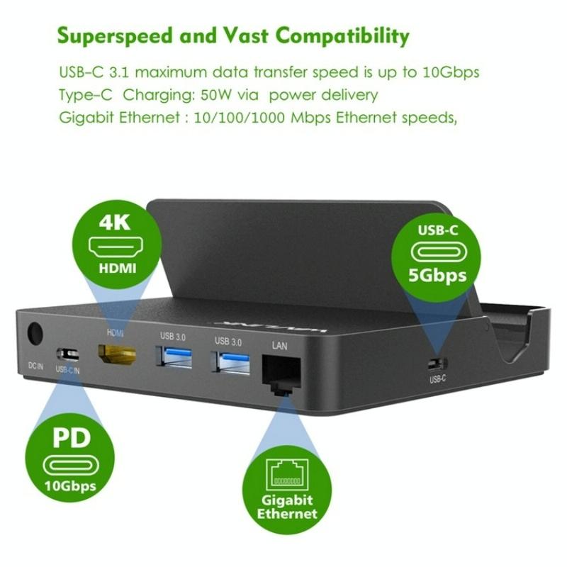 2.Our uniquely designed multifunctional adapter, along with its included power adapter, provides one HD output, a USB-C port, a Gigabit Ethernet port, and two USB 3.0 ports