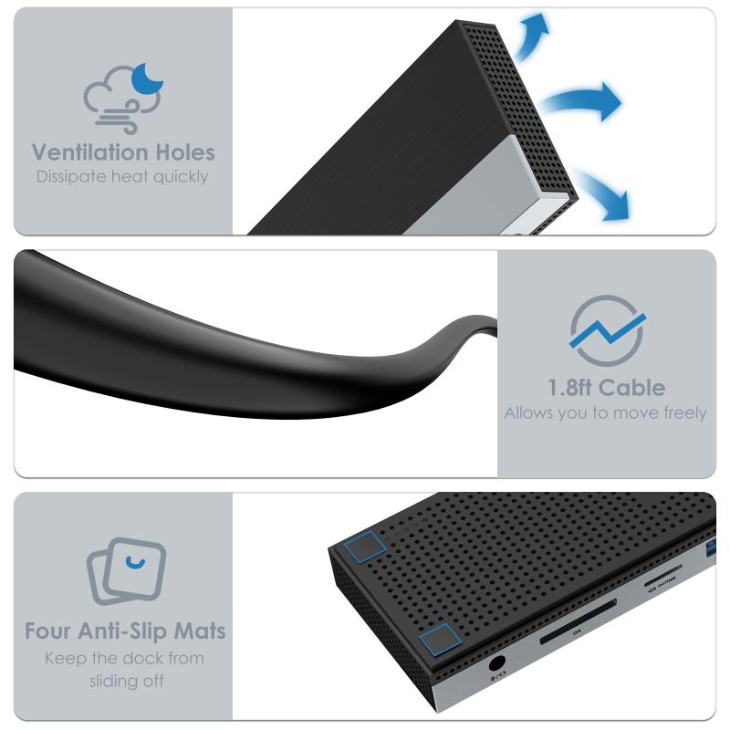 4. With two USB 3.0 ports, you can transfer files simultaneously in seconds, with data transfer speeds up to 5Gbps. Support connecting wireless devices such as keyboard, mouse, etc. through two USB 2.0 interfaces.