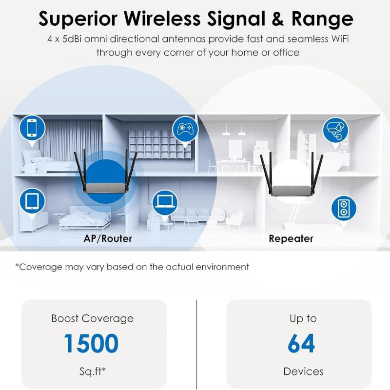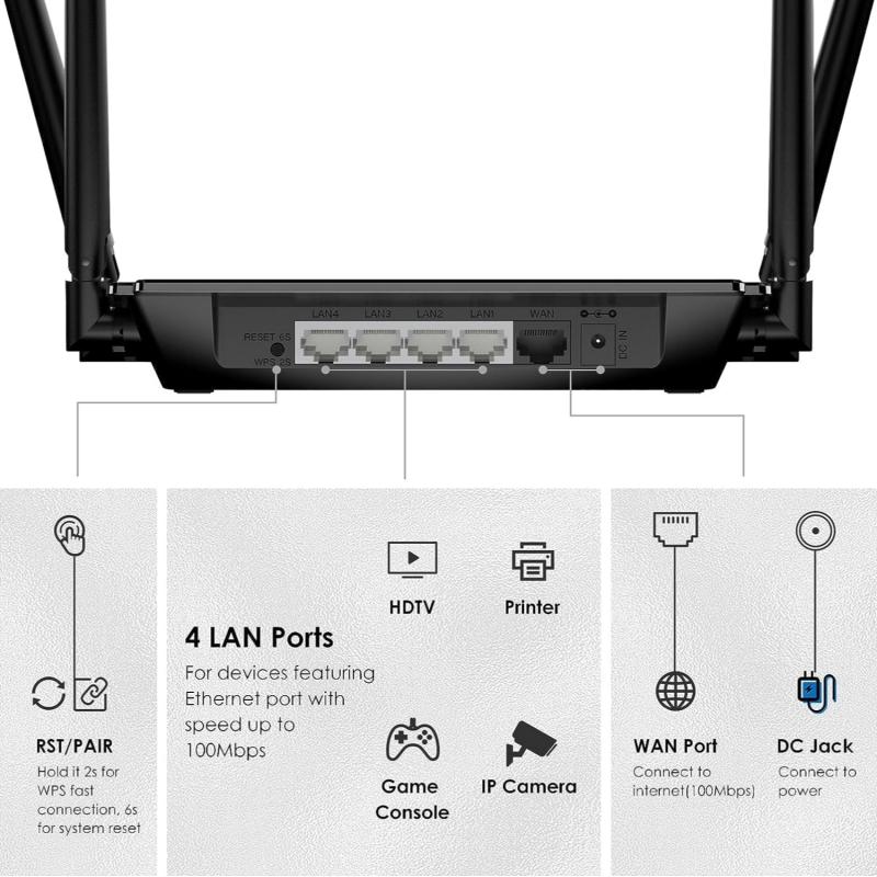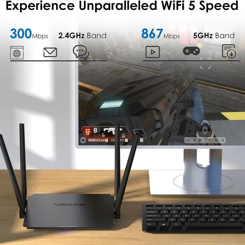 2.Simultaneously connected to 5G 867Mbps and 2.4G 300Mbps, with a total available bandwidth of 1167Mbps