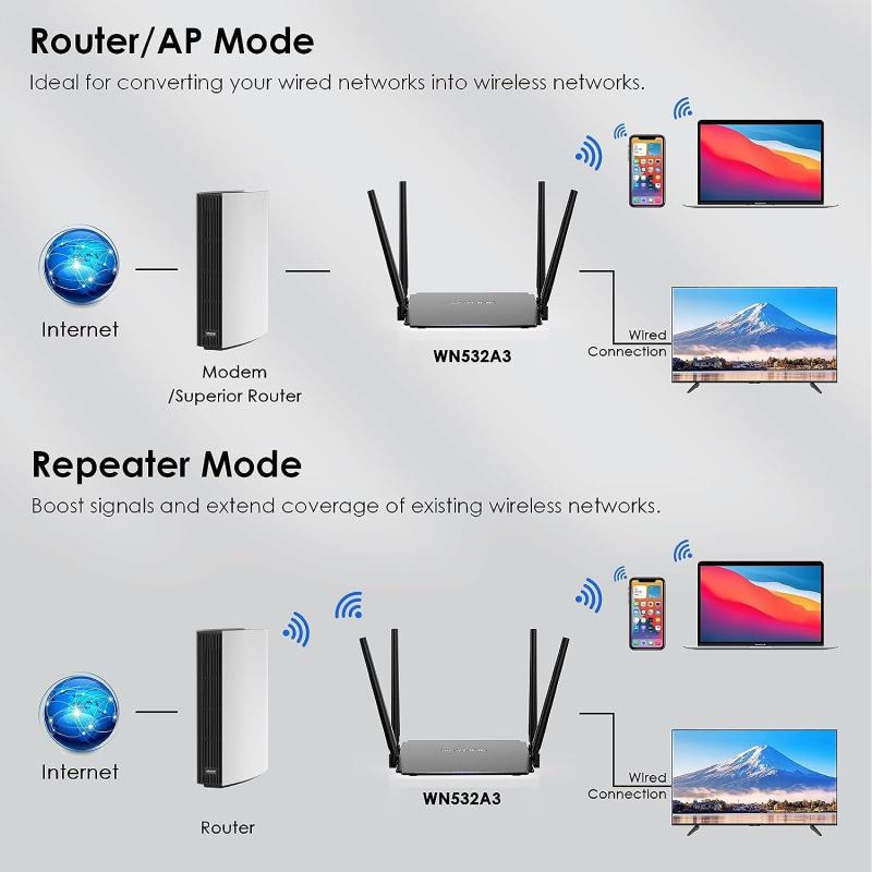 6.Supports internet access through PPPoE, dynamic IP, static IP, and WISP