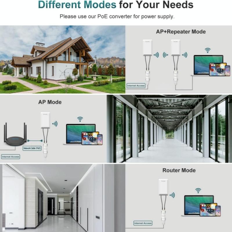 5.Multiple operating modes: AP, repeater, WISP mode, and other operating modes. In AP mode, it also provides client and client+relay modes, allowing you to customize wireless solutions according to specific requirements