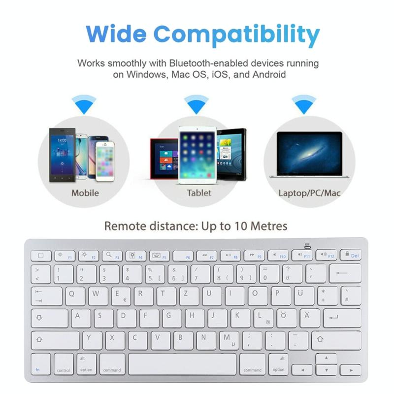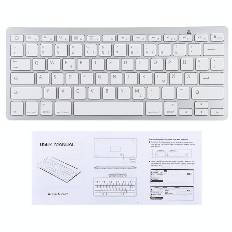 WB-8022 Ultra-thin Wireless Bluetooth Keyboard, German Keys(Silver)