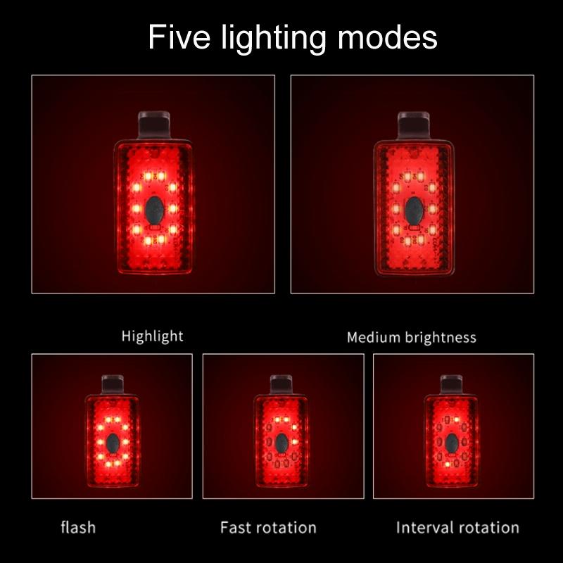 12. Five lighting modes: high brightness, medium brightness, fast flash, continuous rotation, interval rotation