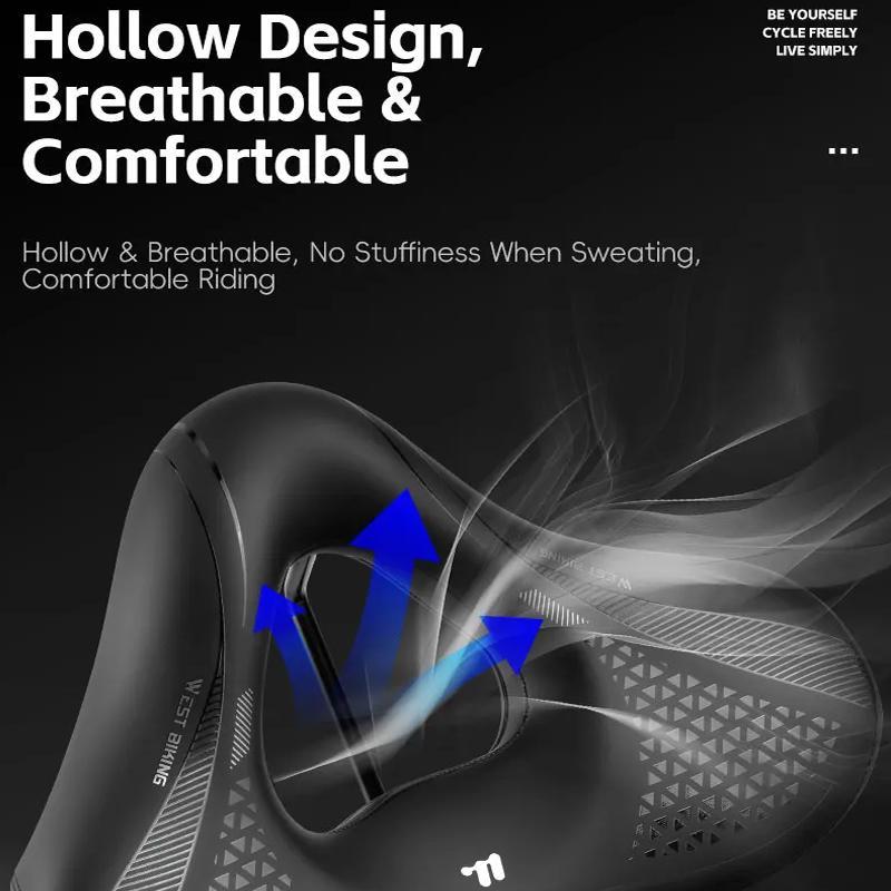 2. Hollow Ventilation Design: The central hollow section promotes air circulation, reducing heat and moisture buildup to help keep the rider dry and comfortable.