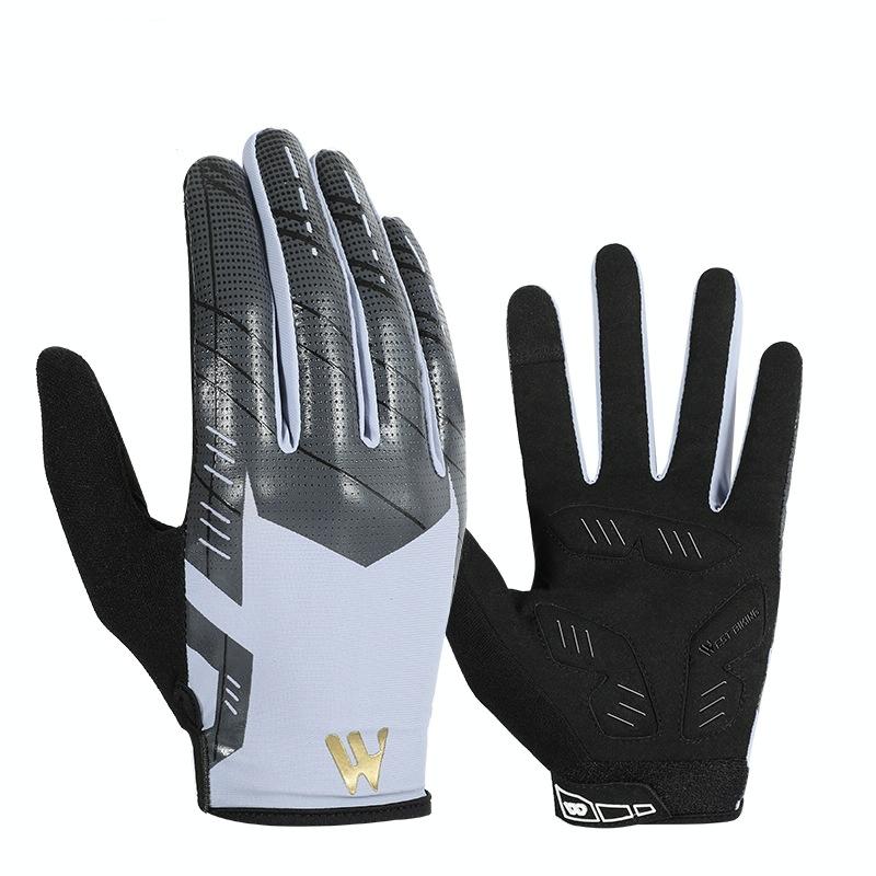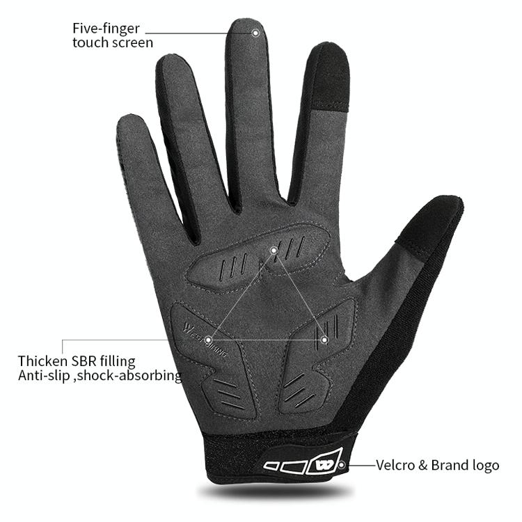 WEST BIKING YP0211207 Riding Full Finger Gloves Road Bike Mountain Bike Locomotive Shock Absorber Gloves, Size: M(Blue Gray) (WEST BIKING)