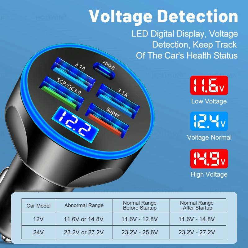 2. Output: Blue USB 5V 3.1A, Orange USB 5V 3.6A 9V/12V 1.5A supports ultra-fast charging, Green USB 5V 3.1A, PD interface 5V 3.1A