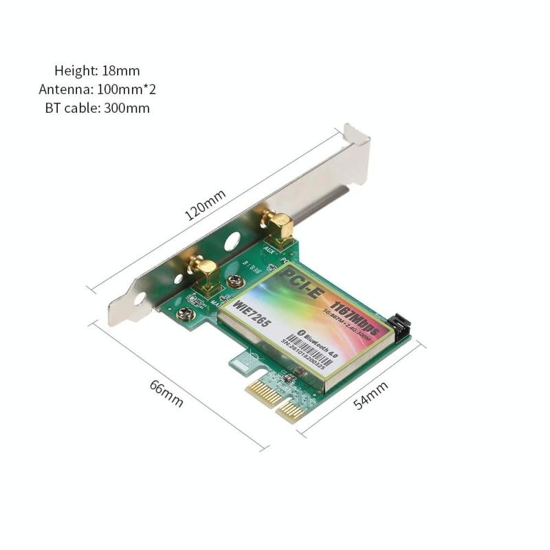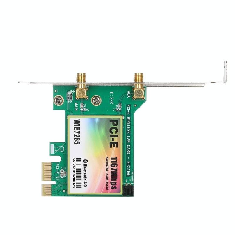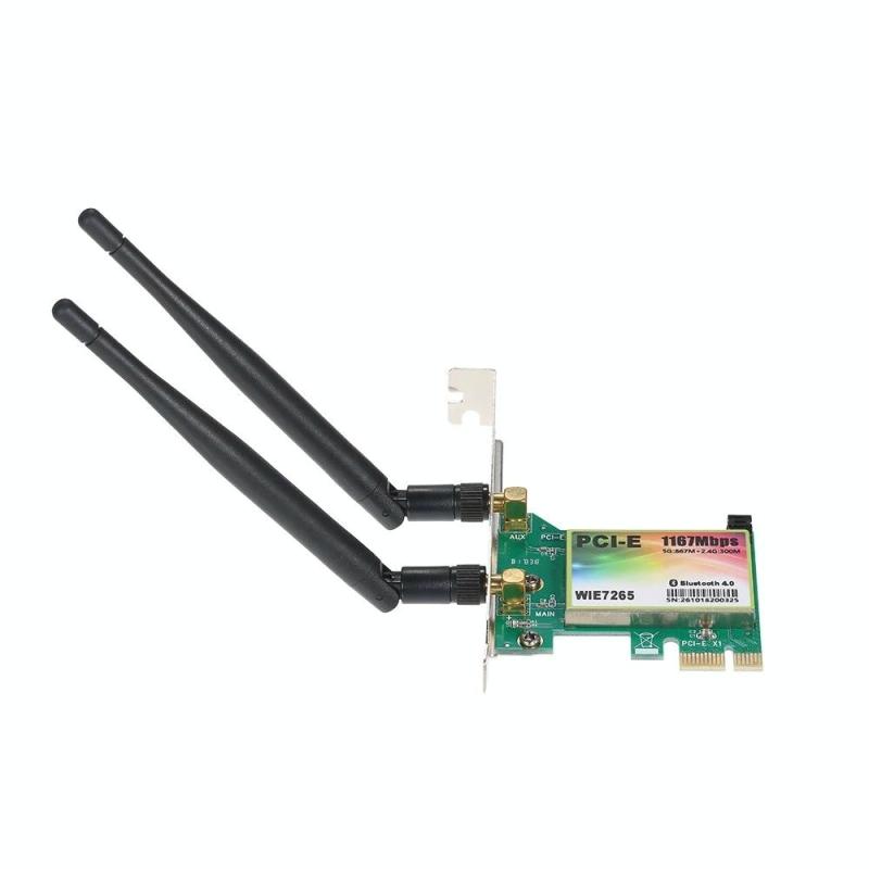 The wireless PCI-E network card is used for desktop. The signal is much stronger. Support 11AC dual band wireless standard. The transmission rate can reach to 1200Mbps. 2.4G support 300Mbps and 5.8G support 867Mbps.