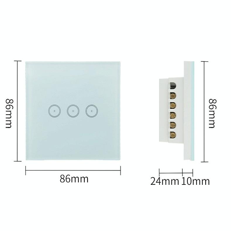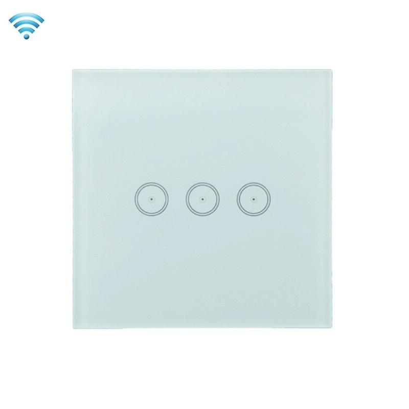 Wifi Wall Touch Panel Switch Voice Control Mobile Phone Remote Control, Model: White 3 Gang (Zero Firewire Wifi)