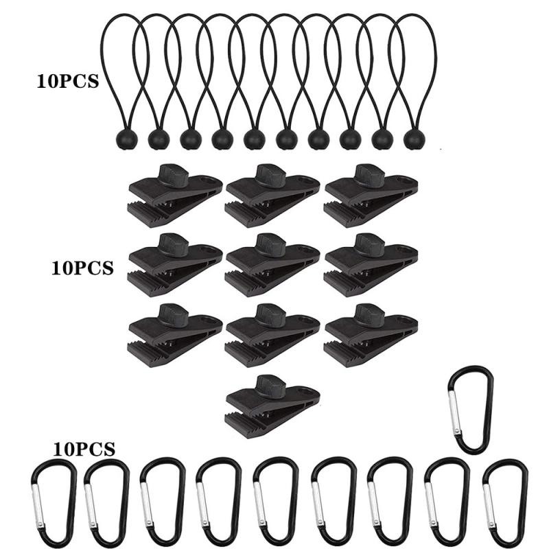 Windproof Canopy Fixed Tent Clip Rope Buckle Set 10 Clips+10 Black Ropes+10 Black Fast Hangings