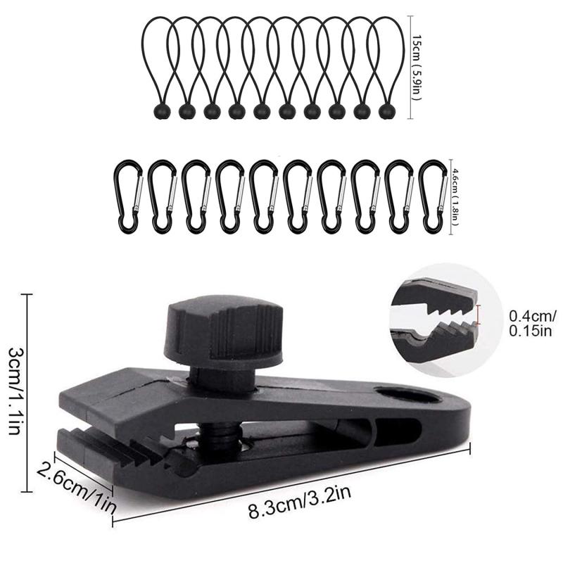 Windproof Canopy Fixed Tent Clip Rope Buckle Set 10 Clips+10 White Dot Ropes+10 Silver Buckles