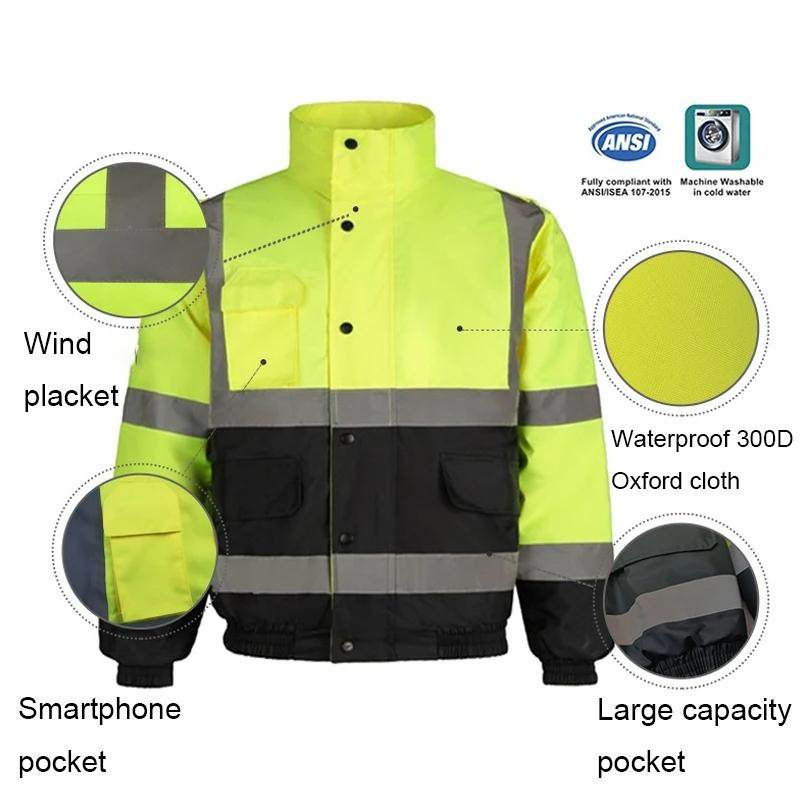 Winter Warm Waterproof Short Multi-pocket Reflective Cotton Jacket, Size: S(Yellow+Navy Blue)