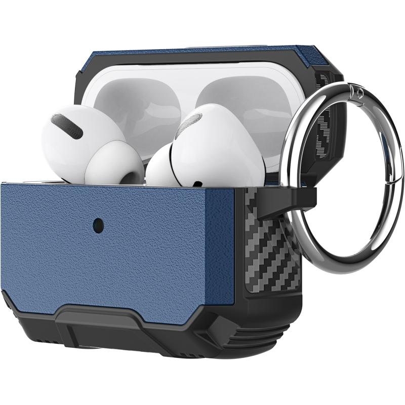 Wireless Earphone TPU + PC Shockproof Case with Hook For AirPods Pro(Navy Blue Black)