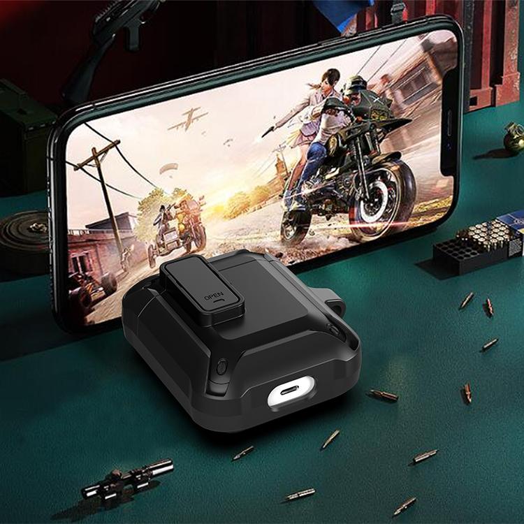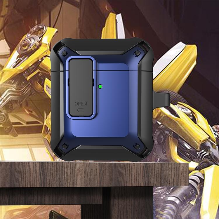 Wireless Earphones Shockproof Bumblebee Silicone Protective Case with Switch For AirPods 1/2(Black Blue)