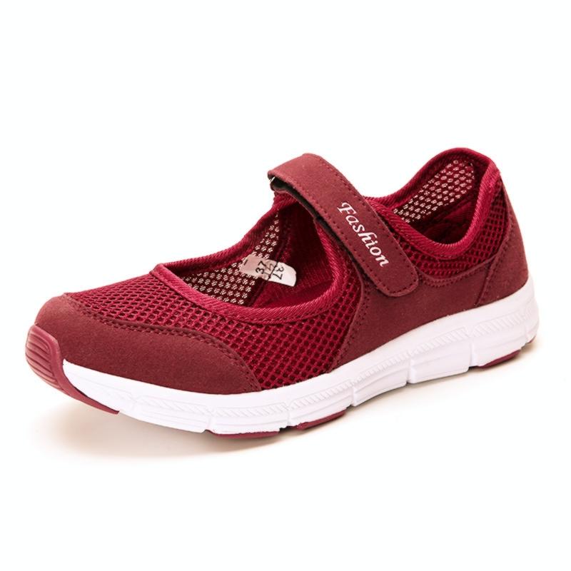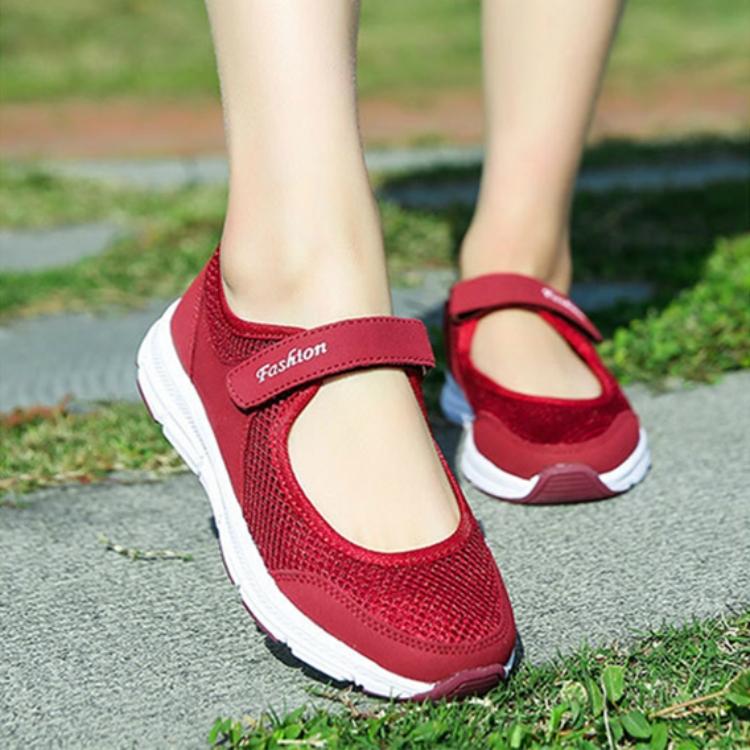 Women Casual Mesh Flat Shoes Soft Sneakers, Size:38(Red)