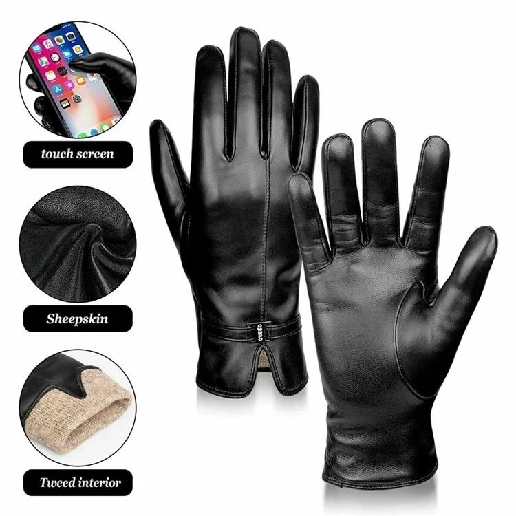 1. Womens sheepskin touch screen gloves, velvet lining, cold protection, and warmth