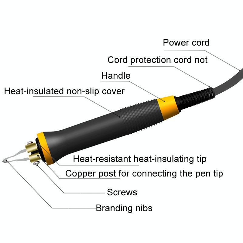 9. Packing list: branding machine x 1, branding pen x 1, pen head x 30, soldering iron stand x 1, small tools x 1