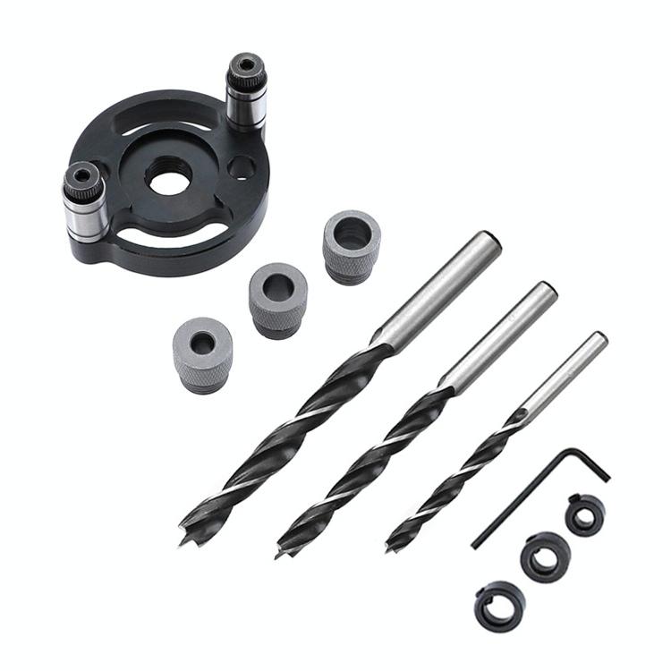 Woodworking Straight Hole Puncher Self-Centering Dowel Splicing Drilling Locator Woodworking Drilling Tool, Style: Black+7 PCS Drill Bit