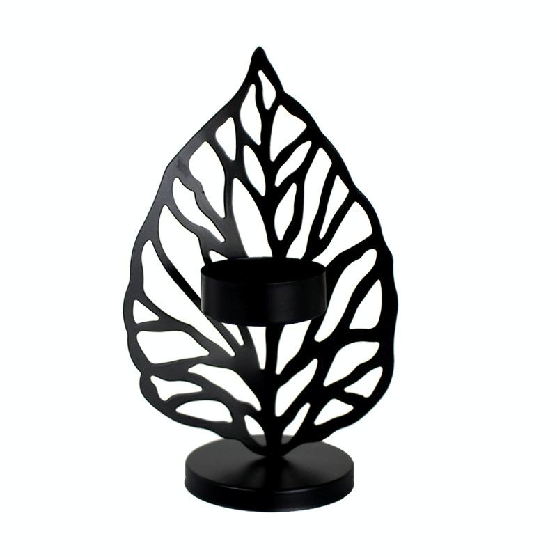 Wrought Iron Candle Holder Living Room Desktop Decoration Ornaments(A Black)