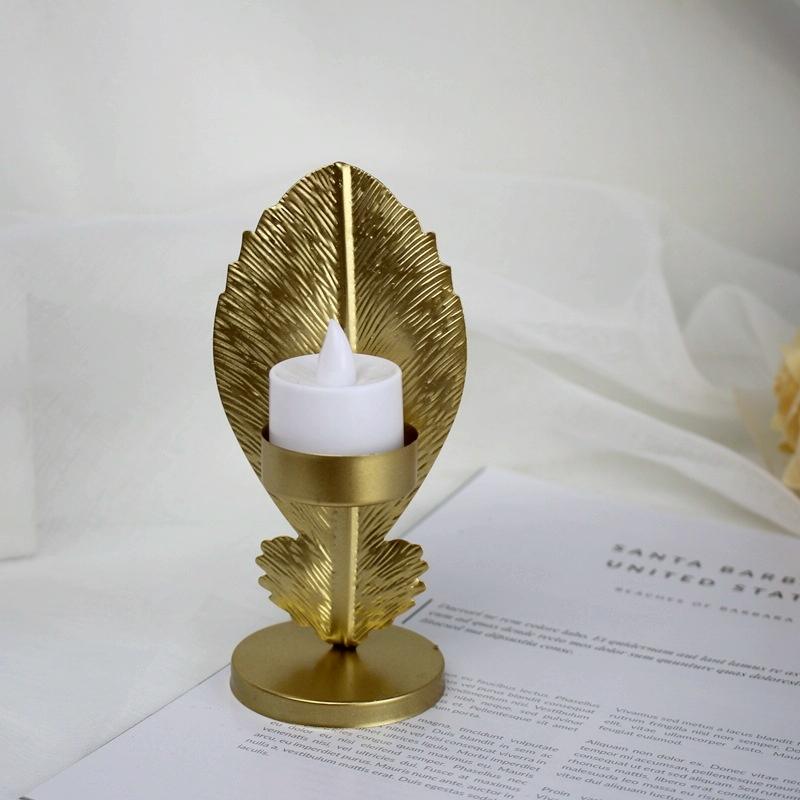Wrought Iron Candle Holder Living Room Desktop Decoration Ornaments(B Gold)