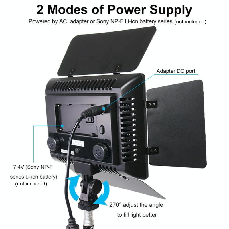 2. Two power supply modes, available lithium battery (not included) power supply and household direct power supply, indoor and outdoor shooting are convenient