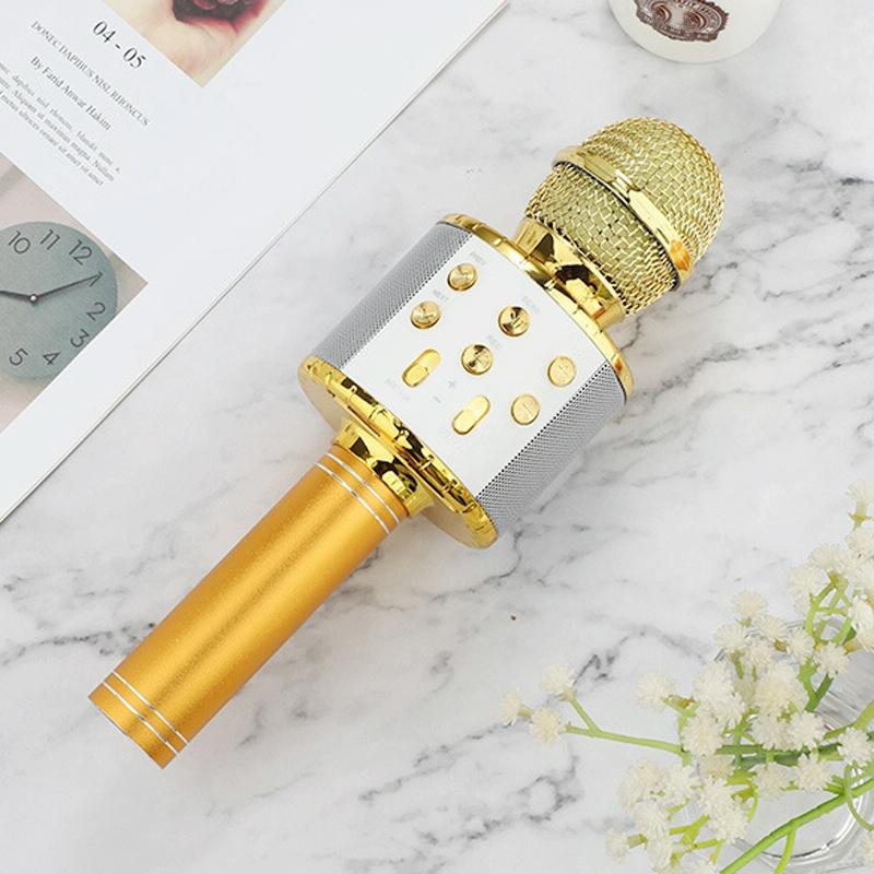 WS-858L LED Light Flashing Wireless Capacitance Microphone Comes With Audio Mobile Phone Bluetoon Live Microphone(Gold)