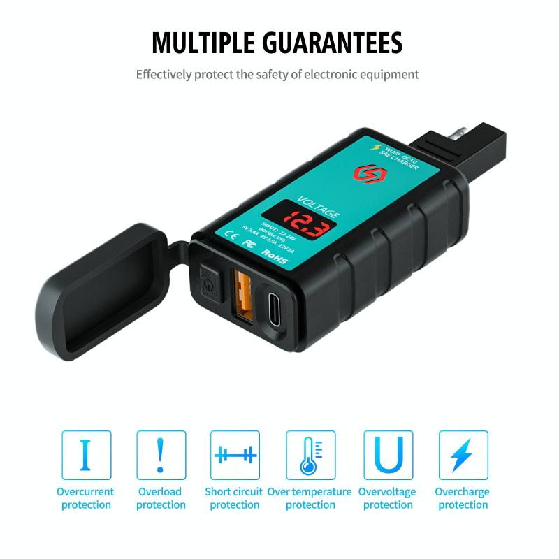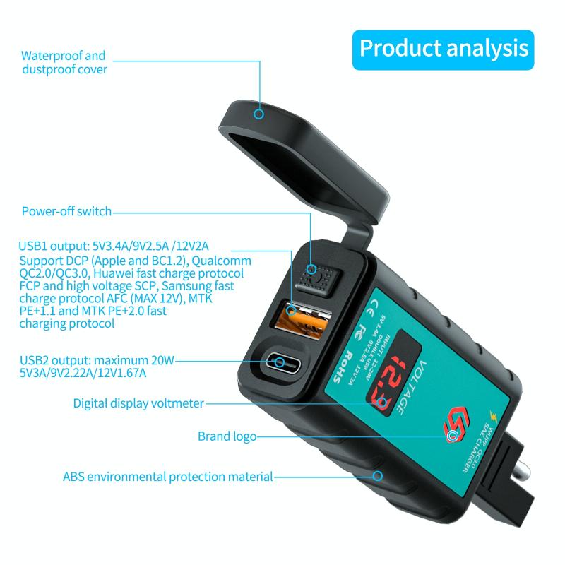 7. It can be installed on DC12V-24V vehicles, motorcycles, ATVs, SUVs, boats and other transportation tools, with a wide installation range; built-in power MOS, can provide 20W output power, and can automatically adjust the output voltage according to the fast charging protocol And current to adapt to the charging power of each mobile phone