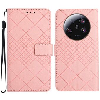 For Xiaomi 14 Ultra Rhombic Grid Texture Leather Phone Case(Pink)