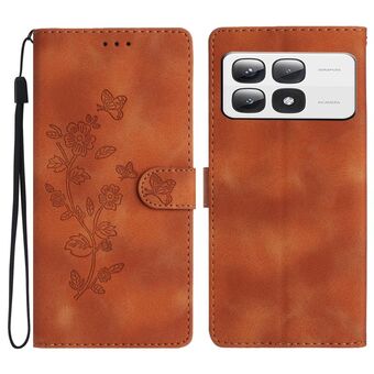 For Xiaomi 14T Pro Flower Butterfly Embossing Pattern Leather Phone Case(Brown)
