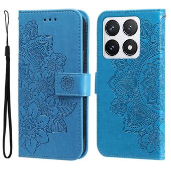 For Xiaomi 14T Pro Flower Butterfly Embossing Pattern Leather Phone Case(Blue)