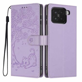 For Xiaomi 15 Pro Tree Cat Embossed Flip Vegan Leather Phone Case(Purple)