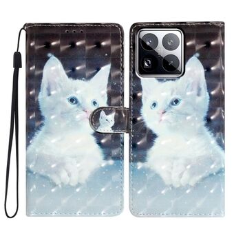 For Xiaomi 15 Pro 3D Pattern Leather Phone Case(White Cat)