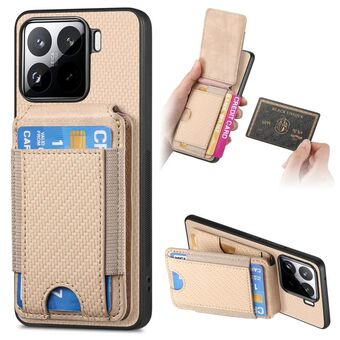 For Xiaomi 15 Pro Carbon Fiber Card Bag Fold Stand Phone Case(Khaki)