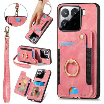 For Xiaomi 15 Pro Retro Skin-feel Ring Multi-card RFID Wallet Phone Case(Pink)
