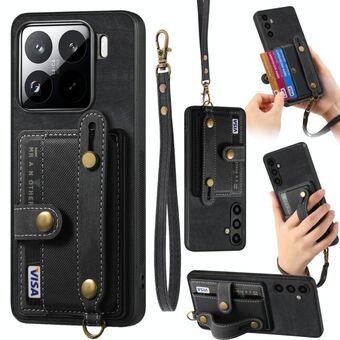 For Xiaomi 15 Pro Wristband Kickstand Card Wallet Back Phone Case with Tool Knife(Khaki)