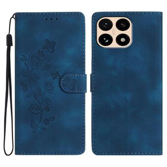 For Redmi 15T 5G Flower Butterfly Embossing Pattern Leather Phone Case(Blue)