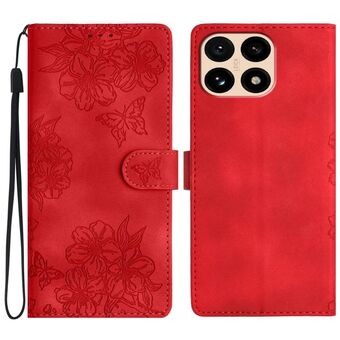 For Redmi 15T 5G Flower Butterfly Embossing Pattern Leather Phone Case(Red)