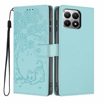 For Xiaomi 15T Tree Cat Embossed Flip Vegan Leather Phone Case(Light Green)