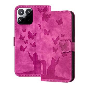 For Xiaomi 15T 5G Butterfly Cat Embossing Flip Leather Phone Case(Pink)