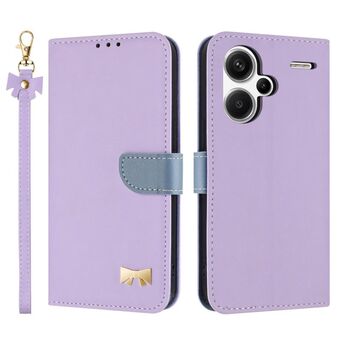 For Redmi Note 13 5G Metal Bow Leather Phone Case with Hand Strap(Purple)